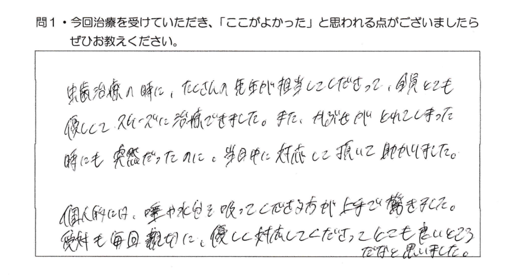 【第5弾】患者さまから中尾歯科クリニックの『サービス・対応』に関するお声を頂戴しております。